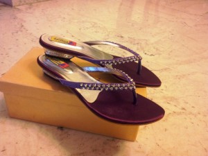 Og så måtte jeg selvfølgelig også lige investere i endnu et par sko: Lilla sandaler med bling-bling leveret i guldæske! Hvad mere kan man ønske sig…? 🙂